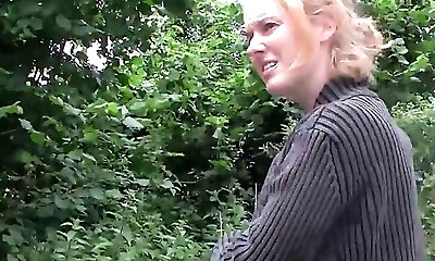 A busty blonde MILF from Germany gets her amazing breasts sprayed with jizm