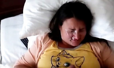 Adorable ash-blonde takes a facial cumshot after a satisfactory fuck
