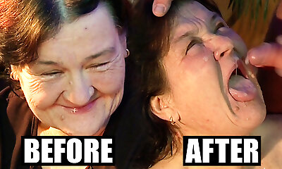 Very aged grandmother didn't know cum on her face