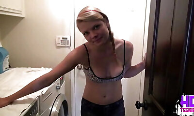 Little Taylor Masturbate Closeup on top Washing Machine