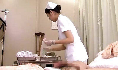 Patients enjoy when the nurse visits them because she always uses her Asian blowjob technology