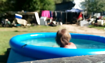 Naughty Redhead Pisses In Neighbours Pool