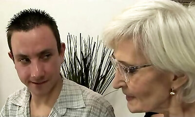 от возбуждения старая зрелая бабуля трахается со своим чувствительным пасынком
