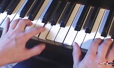 Warm long-haired blonde mounts and sucks grandpa's old cock