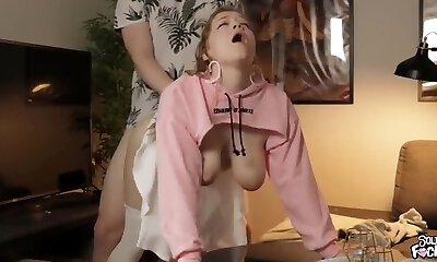 Sexy teen with big natural boobs plowed from behind
