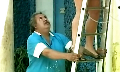 the nanny was cleaning toys at home and bent over doggy, picked up her robe and fucked