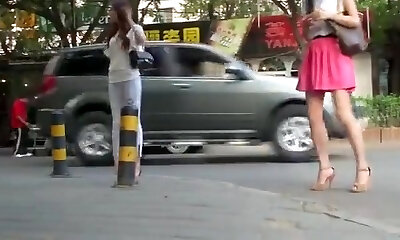 Shy Chinese Teasing Her Under Skirt Cameltoe