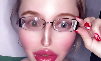 Quite leggy nympho in glasses looks horny about fellating dick