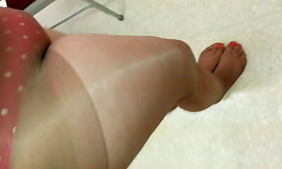 V651 In A Pair Of Nude Stockings I Began Frolicking And Tore A Hole In Them So Dildo Fit Perfect