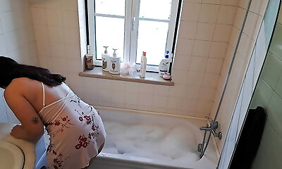 Brunette MILF Nataly Videoing Herself Fucking and Inhaling in Jaquzzi
