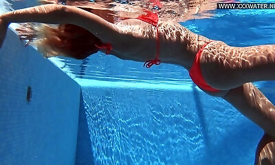 Russian petite cock-squeezing babe Lincoln nude in pool
