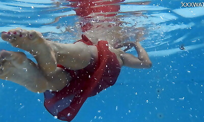 Russian swimmer Diana Zelenkina and her alluring Girlfriend display striptease under the water