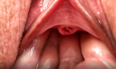 Adorable sweetie is gaping narrow vagina in close-up and havin